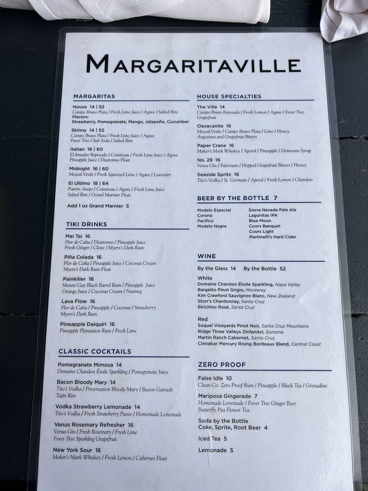 Introducing Margaritaville, a Mexican and seafood restaurant located in Capitola, CA. This beachfront establishment offers a variety of menu options, including nachos, enchiladas, tacos, ceviche, and margaritas. Customers praise the friendly service, outdoor seating with ocean views, and vegan options available. The food is described as tasty, with standout dishes like the Chile Verde burritos, clam chowder, and crispy calamari. Prices are noted to be a bit high, but worth it for the ambiance and quality. While some reviewers mention minor service issues, overall, the experience at Margaritaville is enjoyable. The restaurant is wheelchair accessible, dog-friendly, and offers diverse payment options, including cryptocurrency. For a casual dining experience with good food and scenic surroundings, Margaritaville is a top choice in the area.